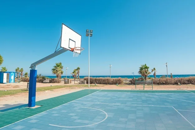 باسکٹ بال کے شوقین افراد کے لیے ہوپس شوٹ کرنے اور پک اپ گیمز کھیلنے کے لیے آؤٹ ڈور کورٹس۔